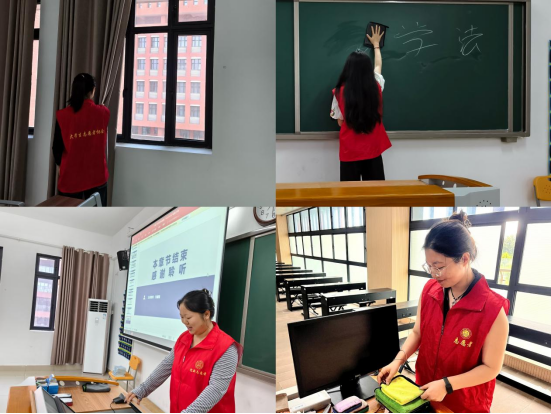 本次活动聚焦教学实际需求,组织员工党员成立多个助教小组,通过细致、贴心的实际劳动,为授课教师提供切实帮助。员工党员们主动承担起课前准备、教具整理、多媒体设备调试、课后教室清理等辅助性工作,有效减轻了教师的事务性负担,保障了教学环节的顺畅进行,营造出更加温馨、有序的教学环境。