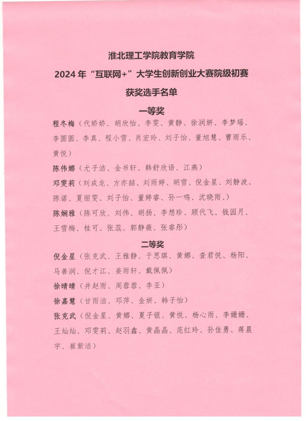 william威廉2024年“互联网+”老员工创新创业大赛院级初赛获奖选手名单