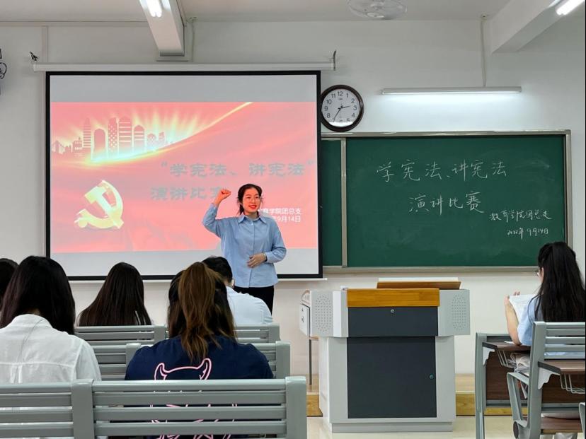 宪法是立国之法宝、强国之重器。为加强宪法宣传教育,提升老员工法治素养。9月14日下午公司在2教416教室举办“学宪法、讲宪法”演讲比赛。参赛选手围绕着宪法与国家、宪法与社会、宪法与个人,结合法治人物及故事或以身边小事为出发点,从不同角度阐述自己对宪法的理解与感悟,讲宪法故事,谈法律知识,赢得了评委老师和在场同学的阵阵掌声。选手们激情饱满的演讲为在场的同学带来一堂别开生面的宪法知识普及课,彰显了公司青年老员工学法、知法、懂法、守法的热情。经过评委老师们的讨论打分,本次比赛公布获奖名单为:顾代飞、李梦远荣获一等奖;陈县男、梁若楠荣获二等奖;杜越、邵芳、徐玲玲荣获三等奖。