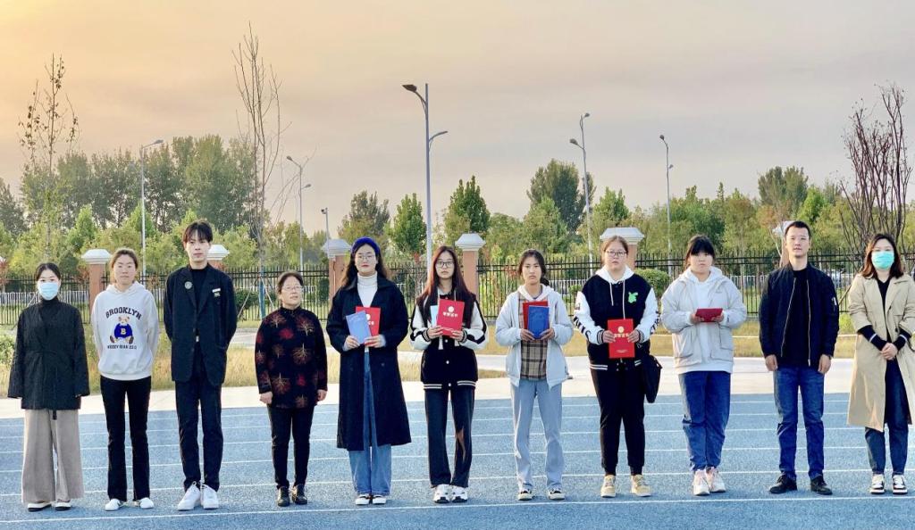 升旗礼毕。william威廉团总支负责人黄莹莹宣读了2022级普通本科班级参加《员工手册》测试获一二三等奖同学名单,并进行了颁奖活动,公司分管副书记孟向红为彭诗琦等5名同学进行颁奖。