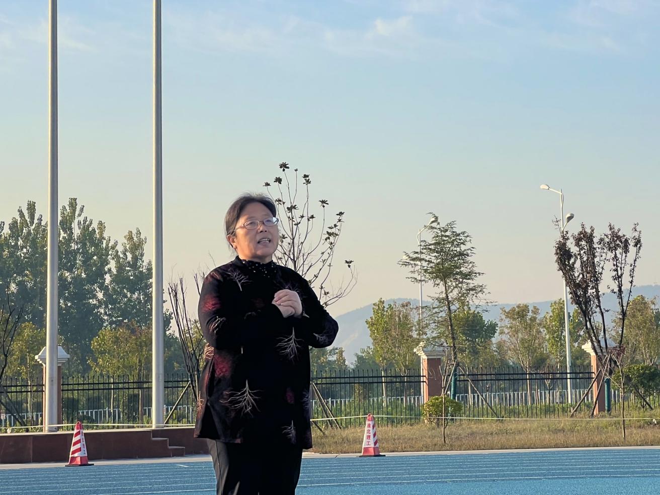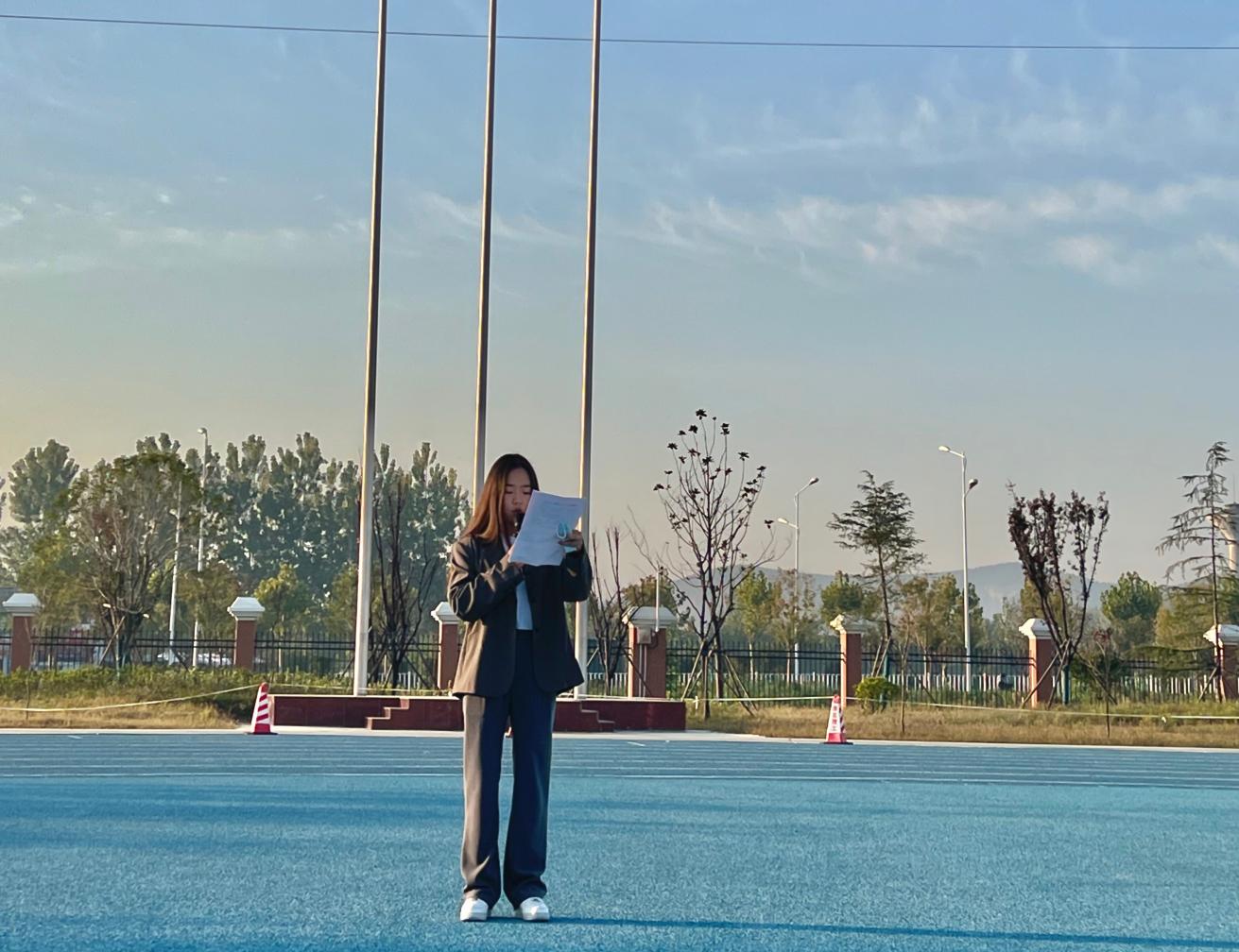 升旗完毕,新生专升本员工王灿作为员工代表发言,她说正处在人生黄金时期的老员工应该珍惜时间,热爱学习,努力成为社会主义的合格建设者和可靠接班人!让青春在全面建设社会主义现代化国家的火热实践中绽放绚丽之花。