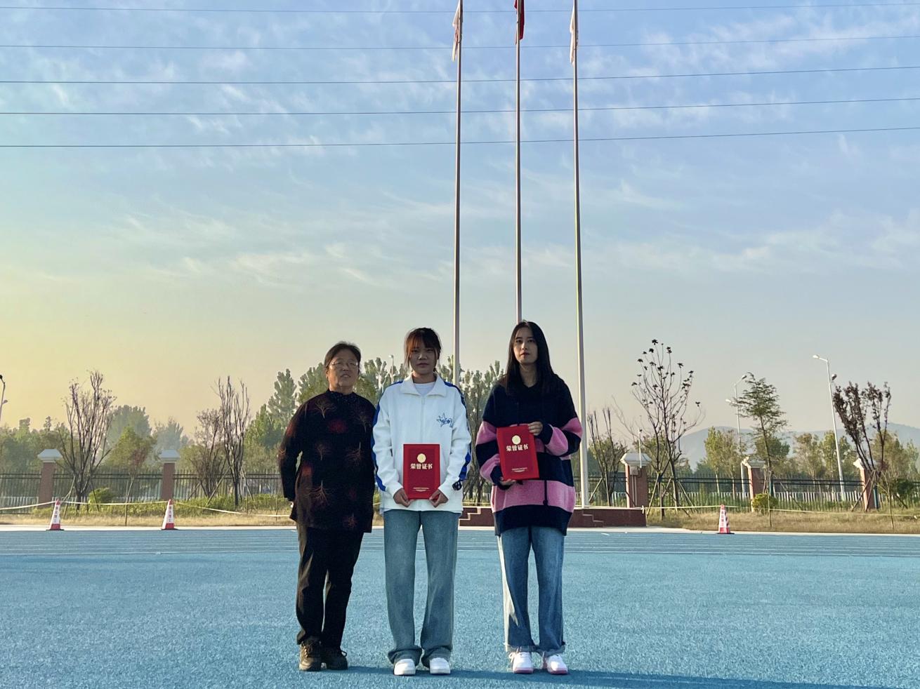 公司团总支负责人黄莹莹宣读了2022级专升本班级参加《员工手册》测试获一二三等奖同学名单,孟向红为徐瑶瑶等9名同学颁奖。