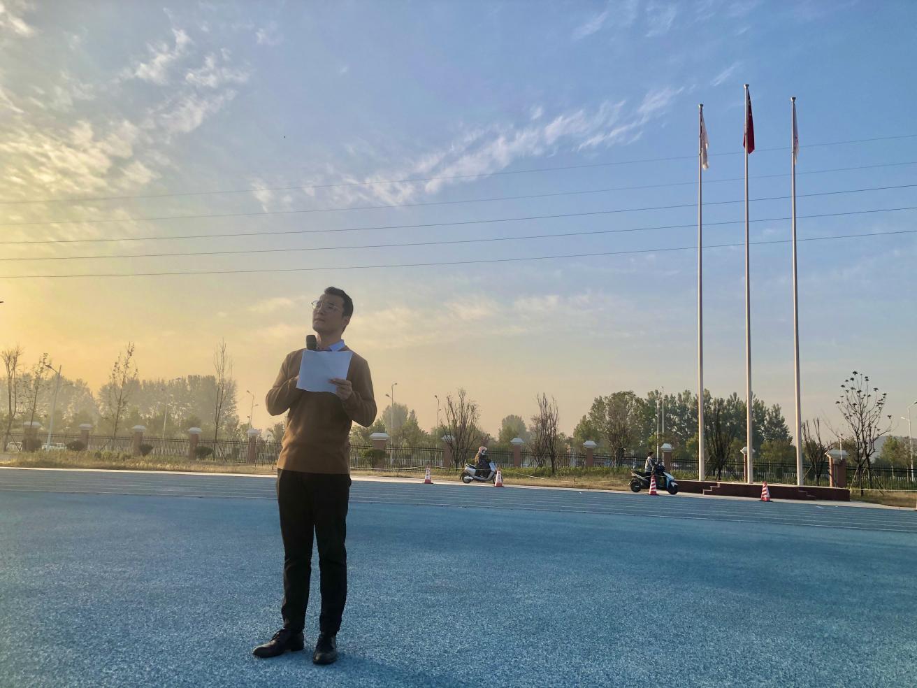 辅导员许海涛作为教师代表发言,许老师表示爱国不是口号,而是行动。同学们应该把爱国主义精神转化为爱公司、爱集体、爱学习的热情。老员工作为祖国未来的主人,有责任、有义务、用实际行动挑起振兴中华民族的重担。