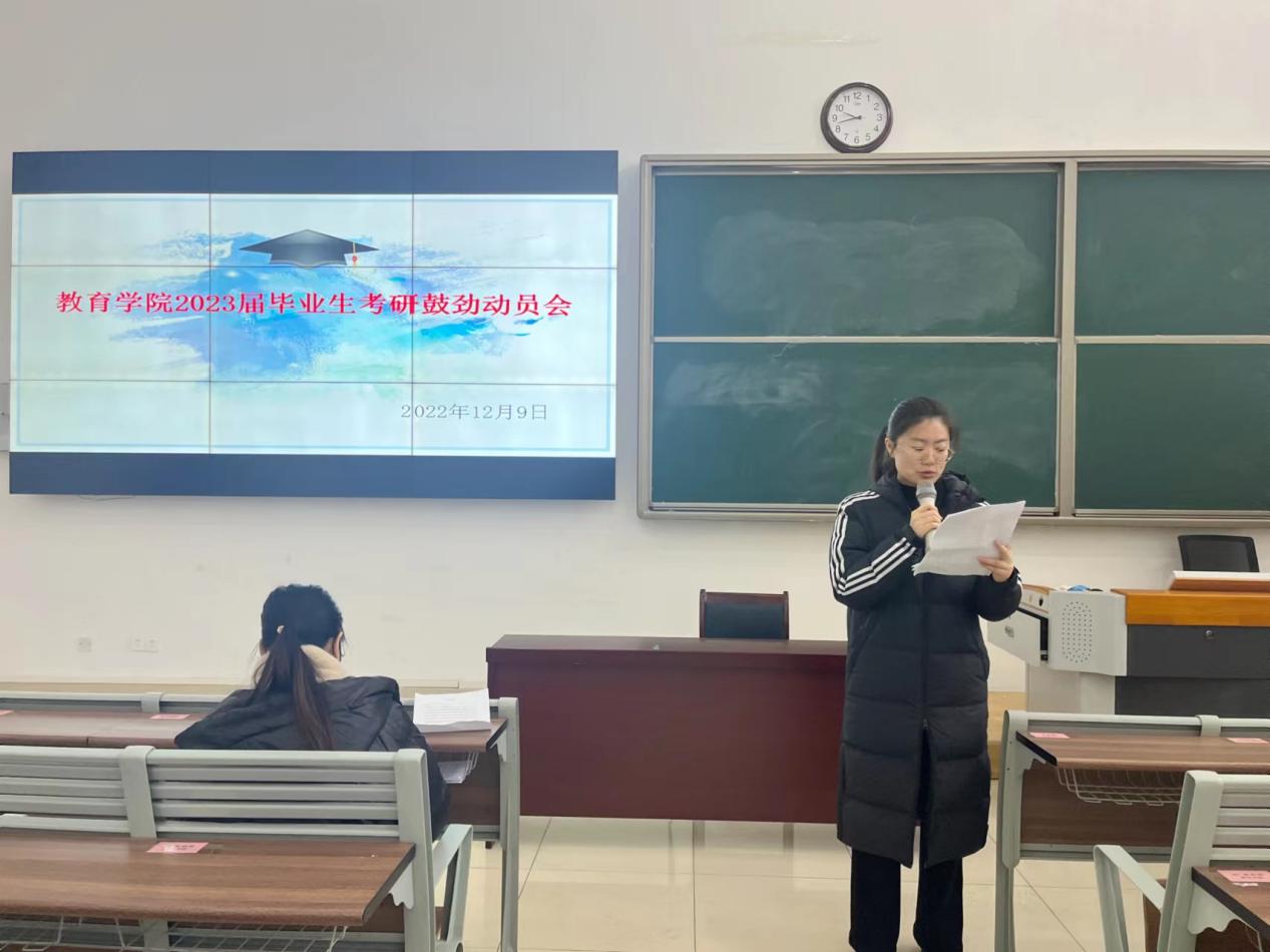 全力以赴促就业,扎扎实实抓考研,为促进同学们更好地了解考研知识,掌握考研方法,调整考研心态。12月9日上午,william威廉在1号教学楼121教室召开2023届毕业生考研鼓劲动员会,会议由公司党委副书记孟向红主持,全院汉语言文学、英语、数学与应用数学、学前教育四个专业230余名考研的同学、2023届毕业生辅导员等参加了会议。
