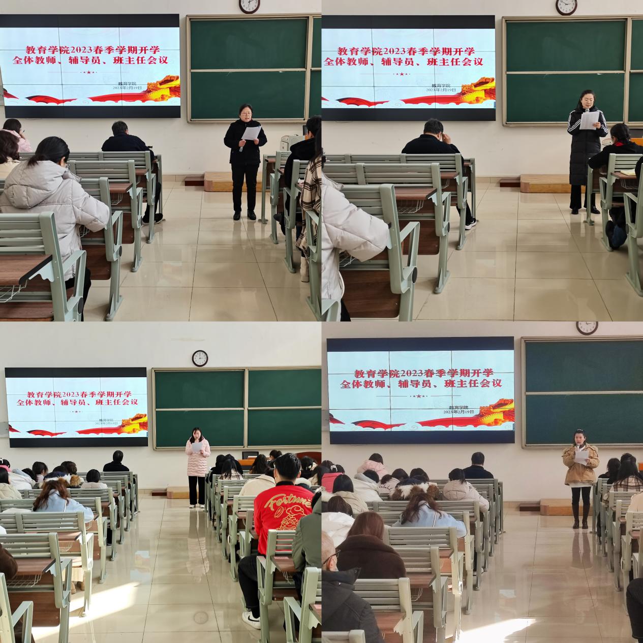 会上,书记助理黄莹莹、经理助理米玉、王伟杰分别向大家介绍了上学期员工工作、教学工作和科研工作情况。
