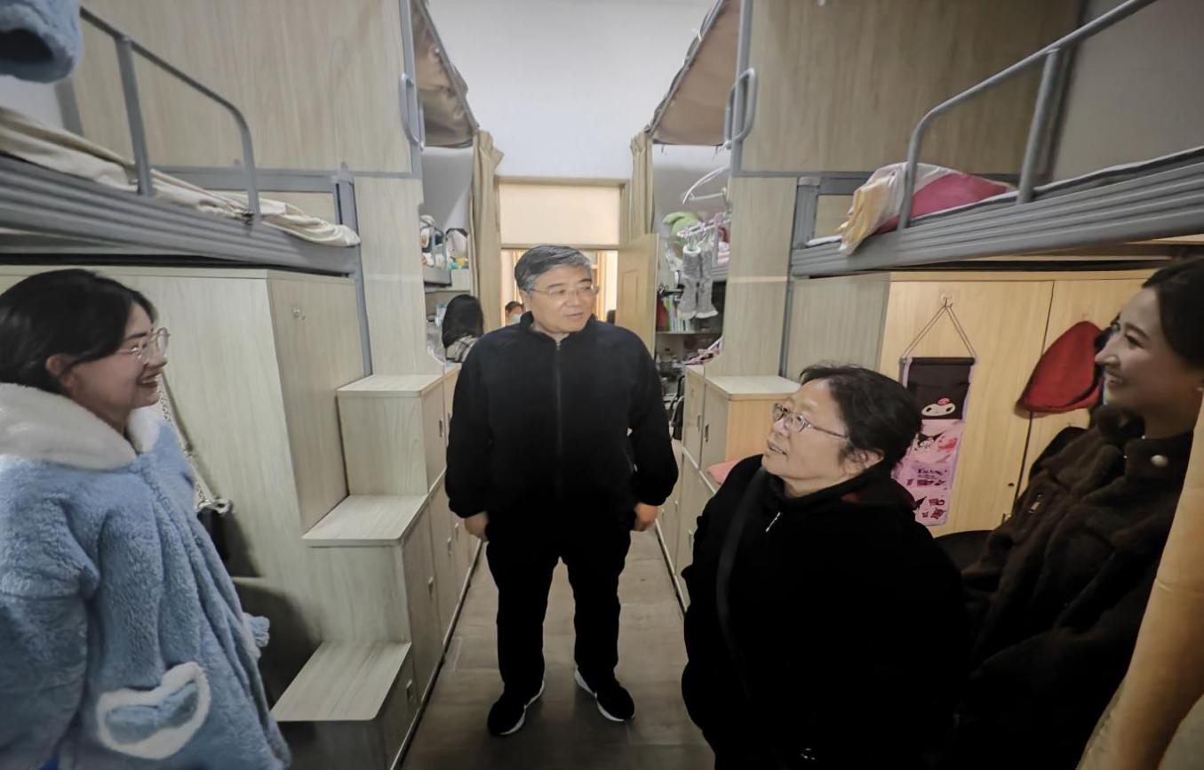 公司领导、辅导员老师与同学们零距离交流受到同学们的欢迎。王经理叮嘱同学们新学期要注意宿舍安全和谐,保持宿舍卫生整洁,确保新学期以最快的速度适应校园生活,进入学习状态,期末考试在即,希望大家认真复习,考取优异的成绩。孟经理嘱咐同学们注意身体健康,勤通风、多运动,养成良好的生活习惯,努力营造积极向上、和谐友好的宿舍氛围。辅导员老师们在走访中还将同学们的需求和需要解决的问题一一记下,尽快帮助同学们落实。同学们感谢各位老师的关怀并表示新学期定不负众望,努力学习,严格遵守校规校纪,以崭新的面貌迎接新的挑战。