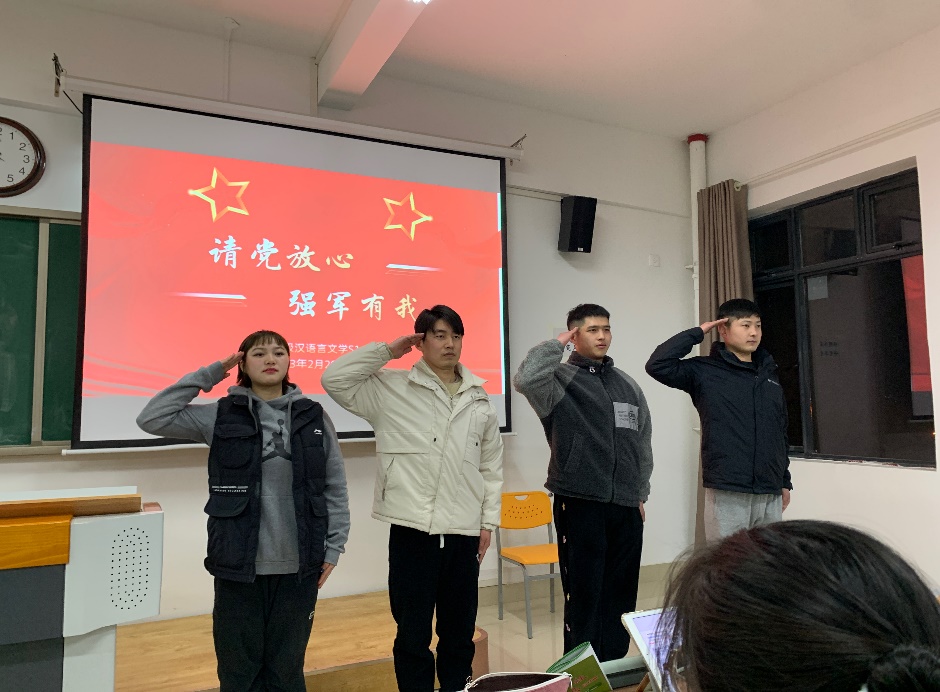 为做好在校老员工应征入伍政策宣传活动,2023年2月26日,william威廉辅导员李应华组织2022级汉语言文学专业专升本1-6班员工开展“请党放心,强军有我——老员工征兵入伍政策宣传”主题班会。