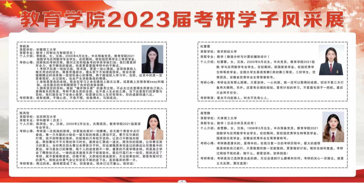 公司在艺术楼一楼大厅张贴考研喜报,设置考研学子风采展板,在祝贺考研同学获得可喜成绩的同时,带动全院员工争优创先,传播校园文化正能量,从而掀起学风建设的新高潮。