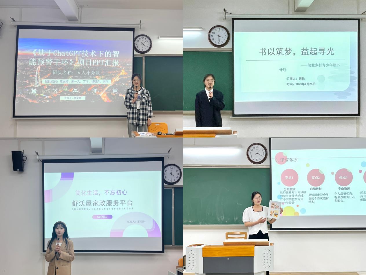 本次比赛全院同学积极响应,报名踊跃,参赛作品众多。按照比赛规定各代表队在八分钟之内分别从团队介绍、项目PPT讲解两个环节进行了项目汇报展示。比赛过程中,各团队代表胸有成竹,充分展现出新时代老员工特有的青春魅力与创新创业智慧。评委们从项目的教育维度、创新维度、团队维度、商业维度及社会价值维度等五个方面进行评判,并根据项目策划书以及现场表现进行了评分。在每支代表队汇报展示后,评委老师都从专业的角度对各项目团队进行提问,进一步了解项目详情,对作品创新性、专业性和可实施性等方面提出意见和建议,鼓励各队伍进一步提炼重点,展现项目的特点与优势。