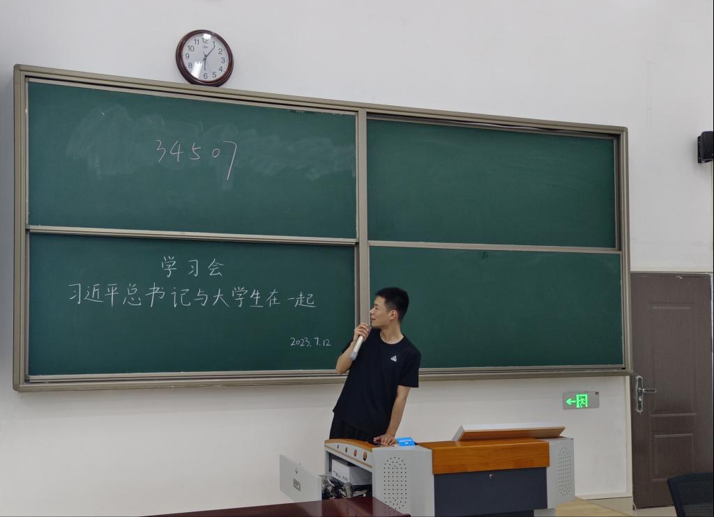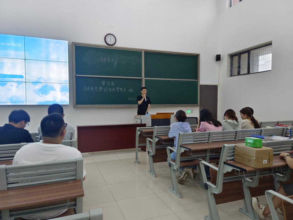 会上,孙虎带领大家共同学习了习近平总书记多次到高校考察调研与老员工朋友面对面座谈讲话的精神。总书记每到一所高校都十分关心老员工们的学习生活,与老员工们谈人生谈理想,他希望广大青年用脚步丈量祖国大地,用眼睛发现中国精神,用耳朵倾听人民呼声,用内心感应时代脉搏,把对祖国血浓于水、与人民同呼吸共命运的情感贯穿学业全过程、融汇在事业追求中,总书记的谆谆教导,深深地感染的参加学习座谈的同学们,大家表示一定要牢记总书记的嘱托,不负韶华,不负时代,不负人民,在青春的赛道上奋力奔跑。