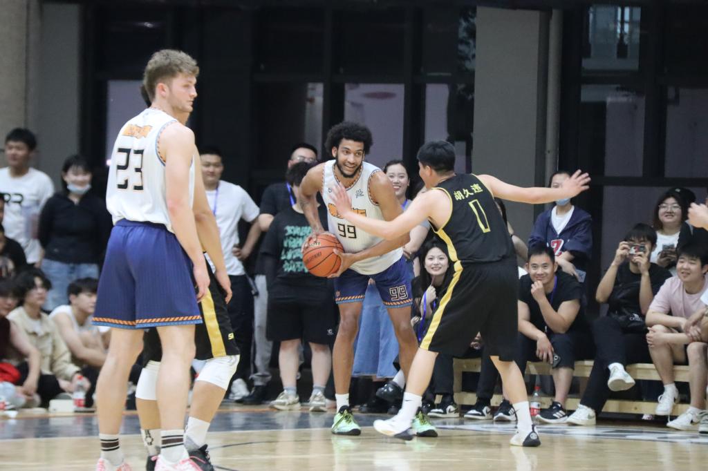 最令人期待的全场5v5比赛压轴登场。集梦风暴队凭借专业素养展开攻势,通过精准投篮和团队配合连续得分。淮北理工联队沉着应对,加强防守并伺机反击。双方球员的精彩表现赢得现场观众阵阵掌声,比赛气氛热烈。