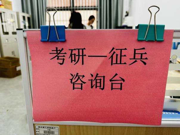 动员会后,公司在艺术楼106办公室设置“考研-征兵咨询台”,郭鸿鑫老师对前来咨询的同学一对一进行答疑、讲解,做到服务周到、答疑精准。截止目前,2026届数学专业毕业生已有10余名员工意向参军入伍,并进行线上兵役登记。