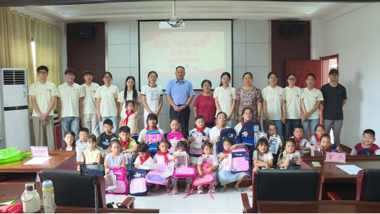 汇演中,孩子们通过合唱《小美满》、舞蹈、诗歌朗诵等节目,展示学习成果,表达对知识的向往和对支教老师的感谢。演出结束后,公司与村领导共同为员工发放书包、文具等学习用品,鼓励他们勤奋学习、追逐梦想。
