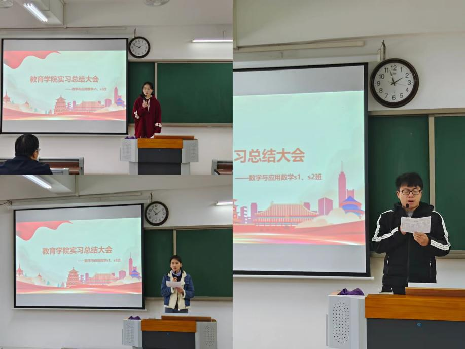 本次总结大会由数学与应用数学教研室李姜悦老师主持,大会主要就2021级数学与应用数学专业在淮北市五所实习公司集中实习及分散实习工作进行总结汇报。两个班各派出三位员工代表,对历时12周的教育实习进行有感发言。六位同学都真情实感地汇报了自己在实习公司的实习经历和心得体会。同学们表示,经过此次教育实习和锻炼,自己在知识积累和实践能力方面都有了很大的进步,同时也深刻地认识到,当代老员工不仅要加强自身专业知识和技能的学习,还要不断提高自身的综合素质与能力。