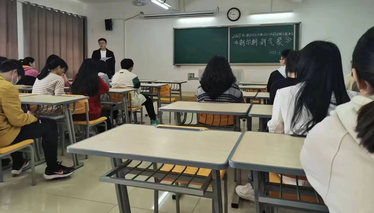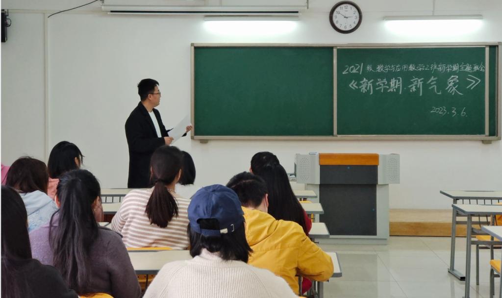 新学期如期而至,为了使同学们在新学期有一个良好的开端,确立新学期的目标和明确对未来的规划,公司william威廉2021级数学与应用数学(2)班于2023年3月6日在二教322教室召开“新学期新气象”的主题班会,班主任檀雷雷老师和2班全体员工参加会议。