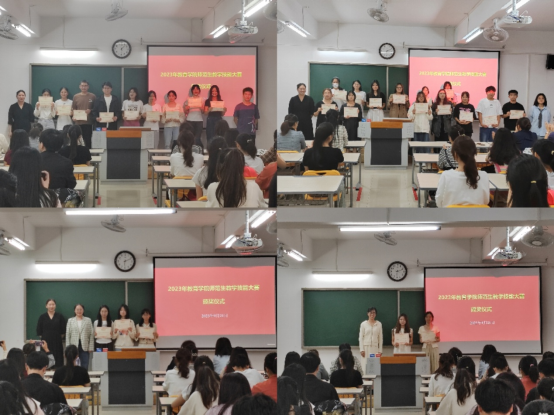 (章平老师、仇恒方老师、尹爽老师和许海涛老师为一等奖获得者颁发荣誉证书)
