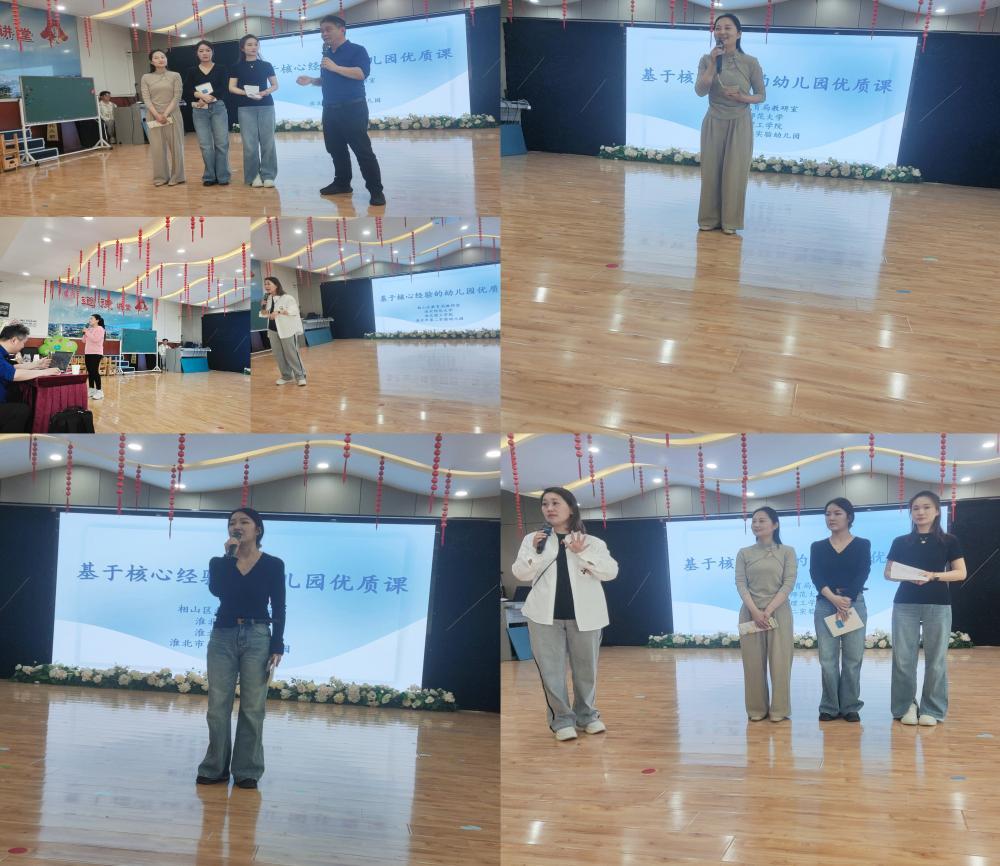 第二阶段专题研讨:首先,米玉从师幼互动、教学机智以及思考的方向等方面谈了参加这三节课的感受,肯定现场教学活动的重要性,同时针对这三节课对员工提出学习要求;其次,三位执教教师从活动目标与思路、重难点掌握与突破等方面对活动进行自我反思,剖析具体、到位;再次,程志宏副教授围绕作品分析、幼儿原有经验、引进新经验的内容与方法等内容,与任课教师展开深入的对话,并提出针对性建议,促进教师与员工共同成长;最后,淮北市第二实验幼儿园业务园长、相山区幼教教研员杨艳从课程的来源与准备、教师的专业发展与机智等方面做了总结,同时对未来幼儿园教师的员工们提出了殷切的希望。