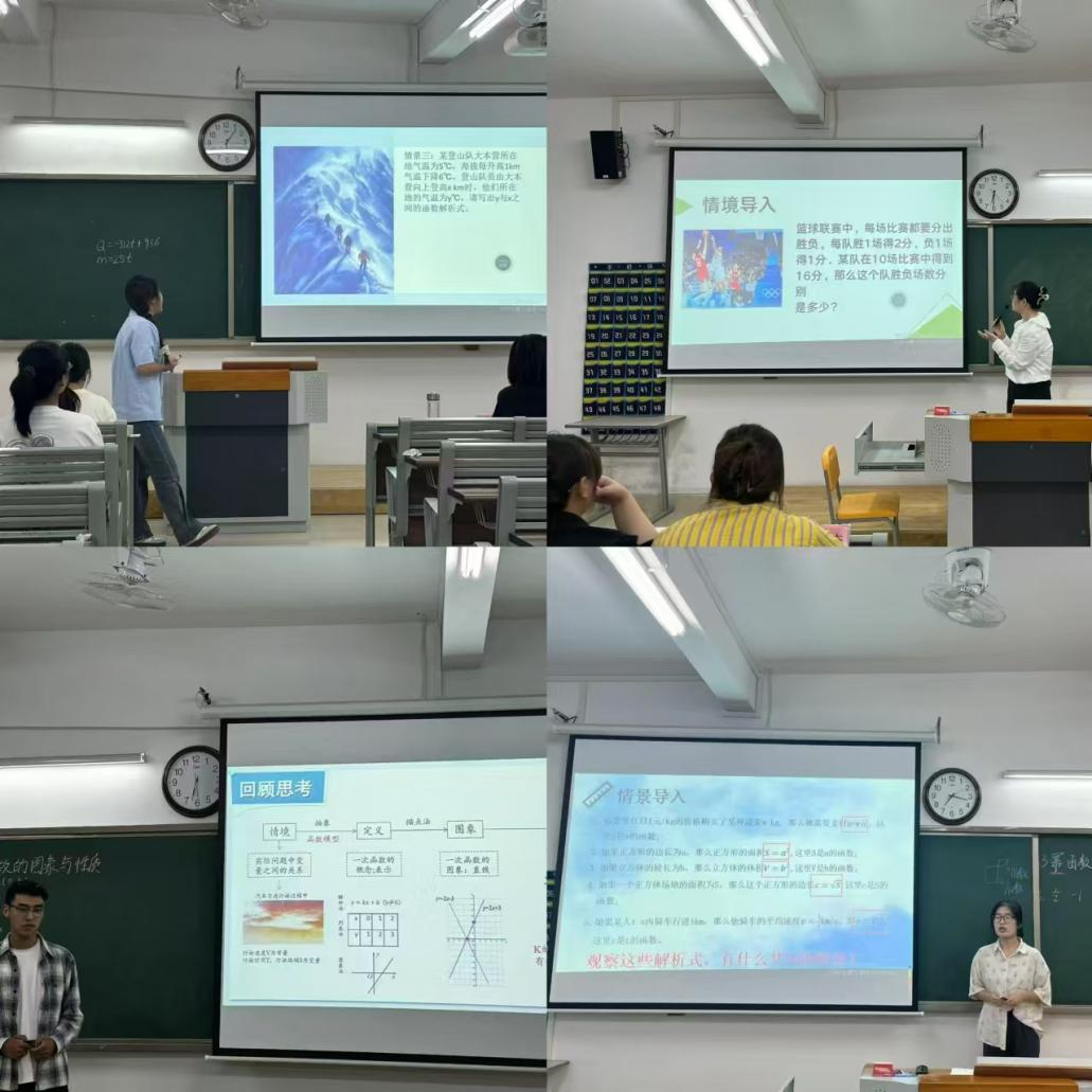 为激发师范生学习热情和创新能力,提高师范生综合素质和实际教学能力,9月9日晚18点,william威廉数学与应用数学教研室在第二教学楼举办第二届师范生教学技能大赛初赛。本次比赛由教研室12位青年教师出席并担任评委,共分为4小组同时进行,每组3位评委,其中小学组1组,中学组3组,william威廉2022级、2023级数学与应用数学专业员工参与比赛。