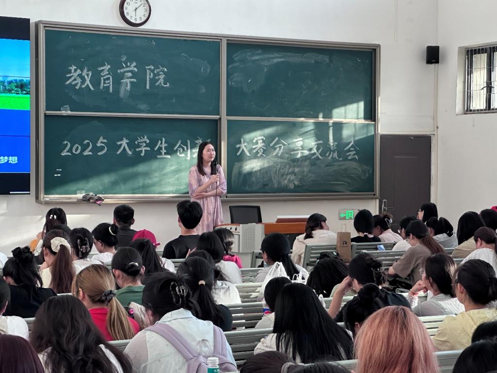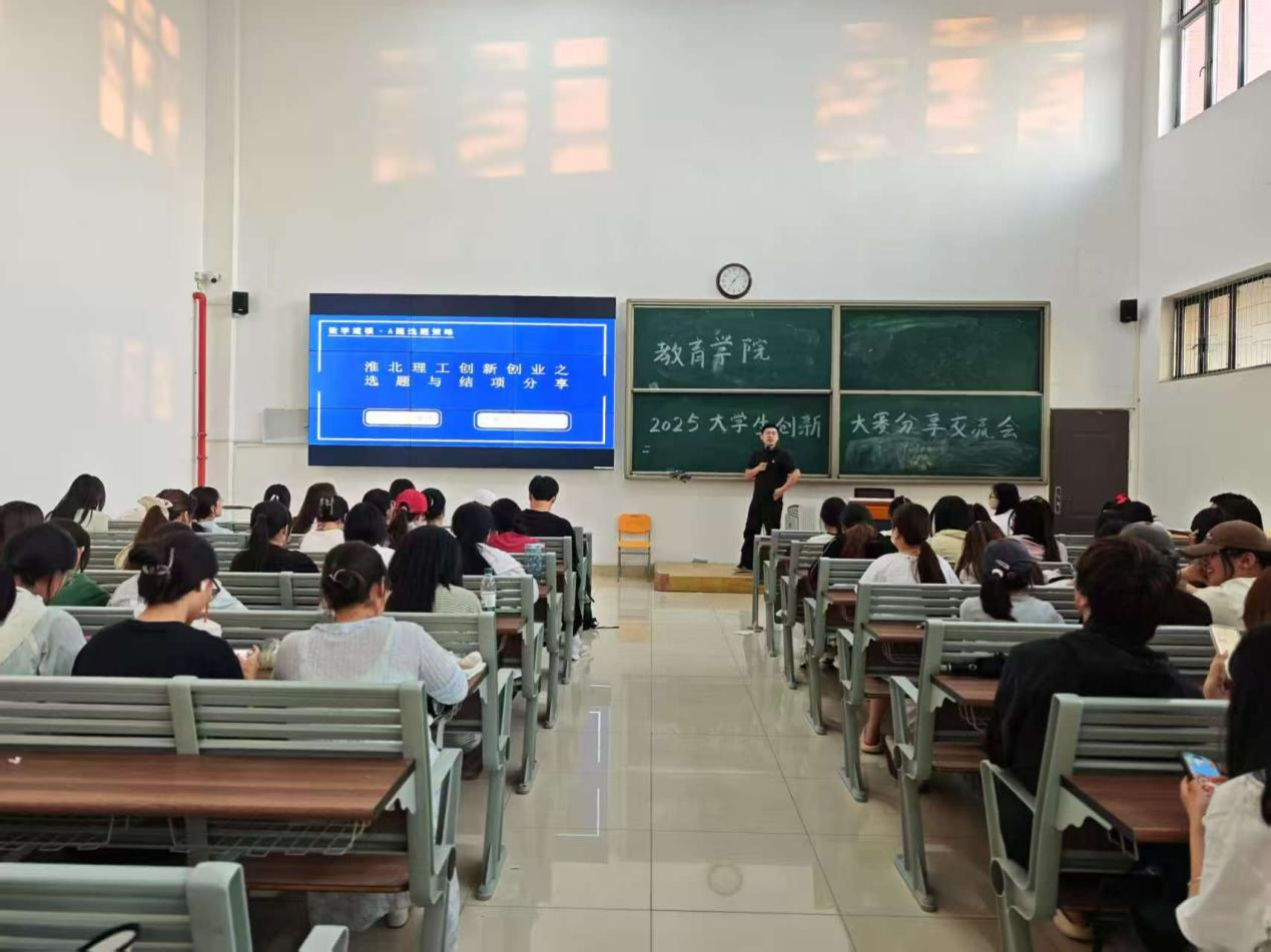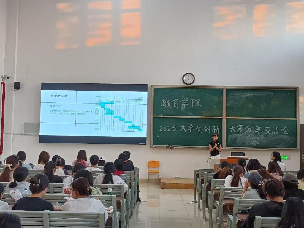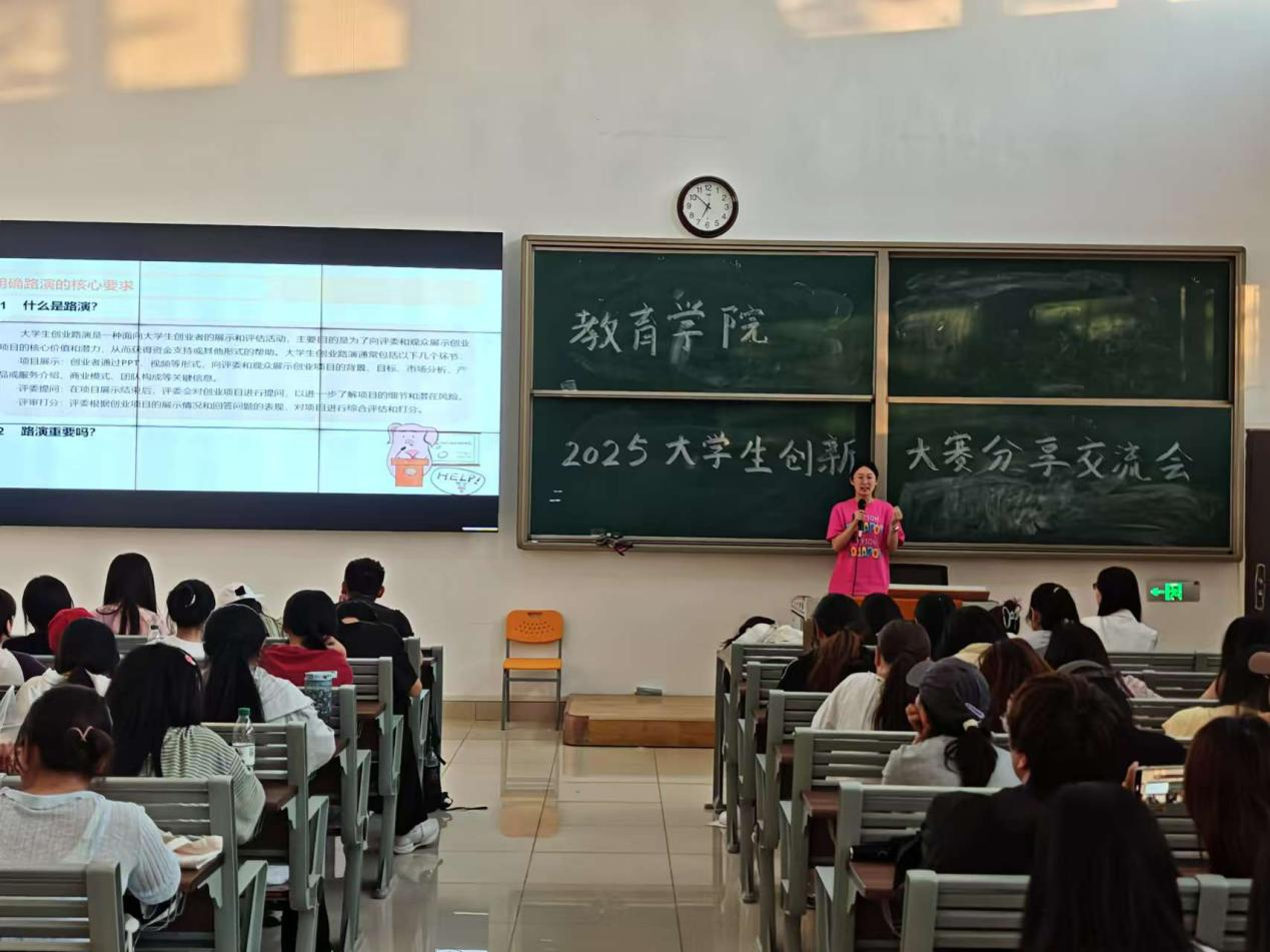 会上,王聪聪、倪金星、陈伟娜三位同学作为参赛代表,结合自身经历分享备赛故事。他们从项目选题挖掘讲起,谈到团队协作打磨方案,再到应对赛事挑战,细致拆解过程,传递“敢想敢闯、精益求精”的创新态度。陈伟娜同学结合自身备赛经历,为大家带来了一场“备赛全攻略”。王聪聪同学以其自身路演经历,为大家揭开了路演环节的神秘面纱。