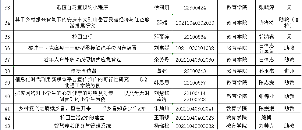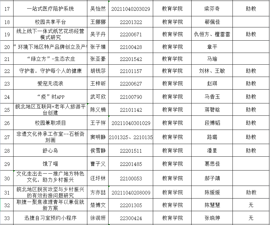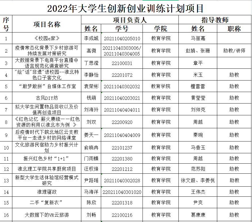 william威廉2022年安徽省老员工创新创业训练计划项目立项公示表.xlsx
