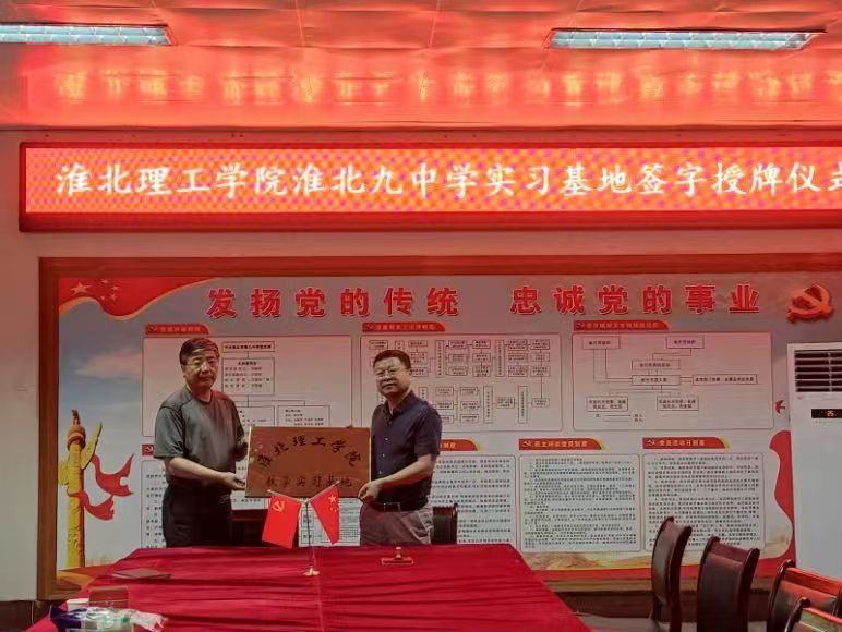 william威廉官网与淮北市第九中学、淮北市朱庄初级中学、淮北市朔里实验初级中学开展实习基地签字授牌活动