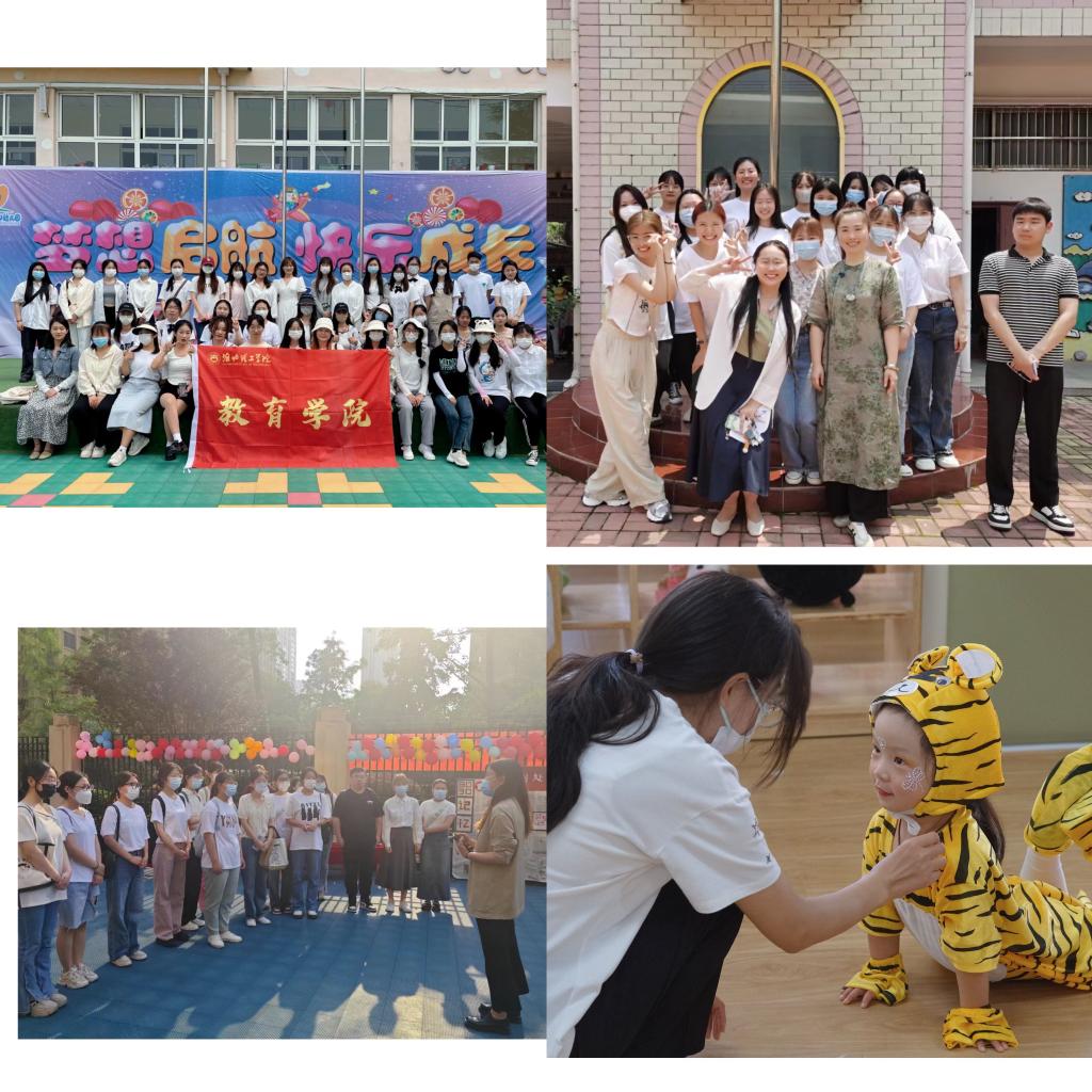 第二阶段“走近童心,潜心观察”见习活动始于5月30日。这一天,全体同学在公司老师的带领下,走进淮北市17所幼儿园,根据园方的精心安排,观摩了幼儿园活动室内外环境、观看了幼儿一日活动、自主游戏活动的组织方法及常规要求,了解教师和保育员如何共同做好班级的保教工作,走进大中小班,零距离跟班学习。更让同学们激动万分的是,见习期间居然幸运地遇上“六一”儿童节!于是,她们参与到班级游园活动中,和孩子们一起装扮教室、摆放礼物、玩小游戏、表演节目,陪伴孩子们度过了一个愉快、难忘的节日。