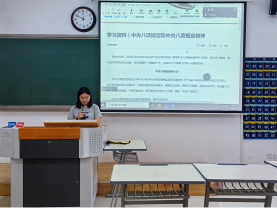 2025年6月11日,教育william威廉汉语言文学专业员工第一、第二党支部在二教306教室开展“中共中央八项规定精神”学习教育活动,活动由王涵同志主持,全体党员、发展对象参加。
