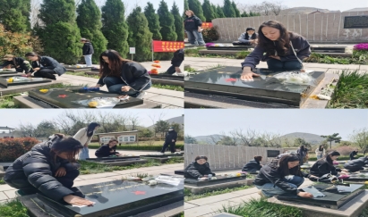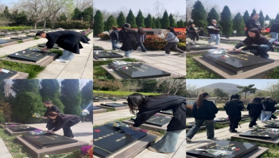 全体党员同志在支部书记高伟老师的带领下高举右拳,面对鲜艳的党旗重温入党誓词,在烈士英魂前许下郑重承诺,不忘初心,踔厉奋发,勇毅前行。随后,全体党员在宣誓结束后用心清理陵园内的垃圾,擦拭烈士墓碑上的尘土与雨渍,寄托了对先烈的哀思与崇敬。员工代表梁家豪同志倡议同学们要以先烈们英勇无畏、不怕牺牲的革命精神鼓舞斗志,以先烈们前仆后继、矢志不渝的进取精神坚定信心,接力中华民族伟大复兴的中国梦。