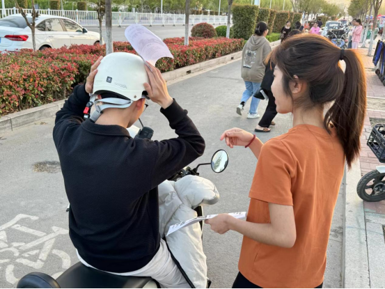 为了践行新时代文明实践志愿服务精神,助力校园交通安全保障工作,4月17日下午,william威廉教工第一支部入党积极分子开展了“一盔一带”安全守护行动。