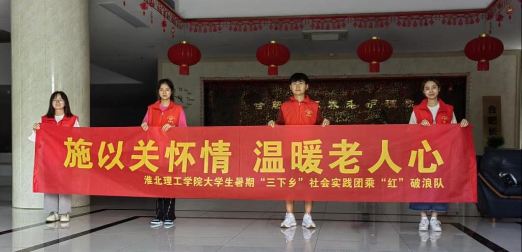 2021级应数2班杨梦媛的所在团队为亳州市谯城区儿童福利院的孩子们送去力所能及的温暖。而与此同时“乘‘红’破浪”团队在队长2021级英语4班罗瑞的带领下来到合肥市包河区长江养老院给孤独的老人们剪指甲、照料身体、唱歌、聊天,进一步弘扬了敬老、爱老、助老的中华美德,营造了关爱老年人的良好氛围,展现了当代老员工尊老爱老的良好风气。