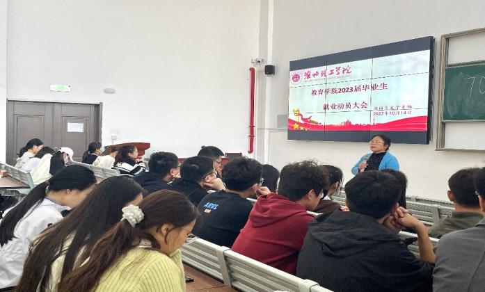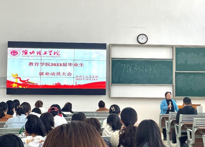 为贯彻落实公司就业工作要求,促进公司毕业生积极就业,提高就业质量,2022年10月14日上午,公司在1教121教室分专业召开2023届毕业生就业动员大会,公司分管副书记孟向红、辅导员彭慧敏、何茹雪带领2023届英语和汉语言文学专业毕业生分别参加了动员大会。