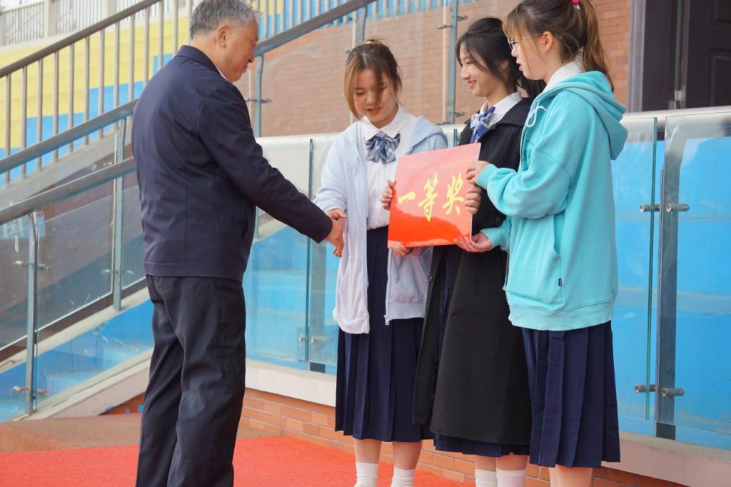 最后,公司副董事长汪建利、教务处处长陈国平、后勤处处长程坚、公司经理王家云为获奖班级颁奖。