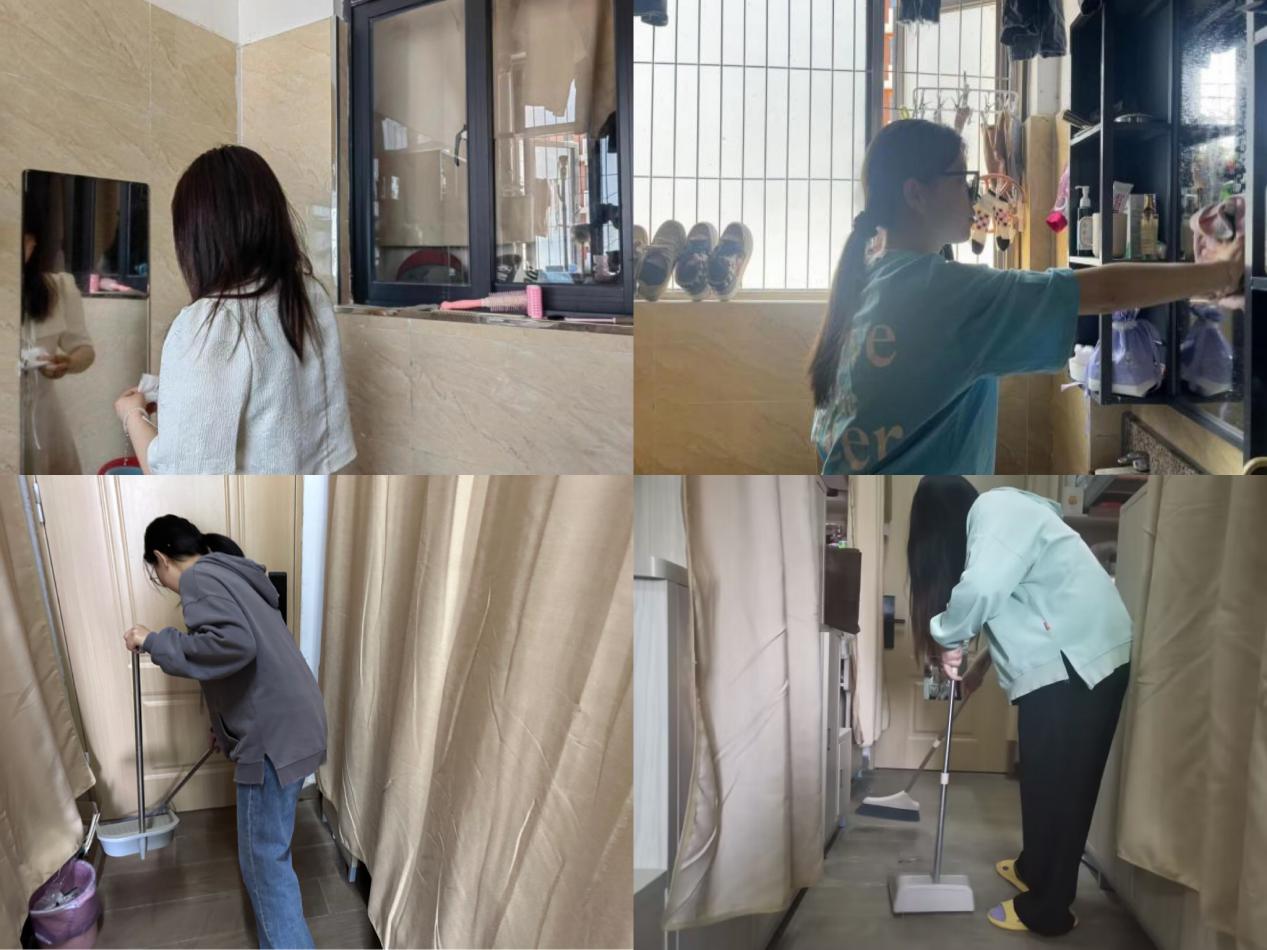 员工宿舍是同学们在公司的家,为引导大家养成良好的生活习惯,公司5月9日、10日,组织开展了“宿舍卫生大扫除活动”,大家从自身做起,主动地将自己的书桌、床铺、物品收拾整齐,将寝室公共的洗漱间、地面、窗台等收拾干净,营造了良好的寝室卫生环境。
