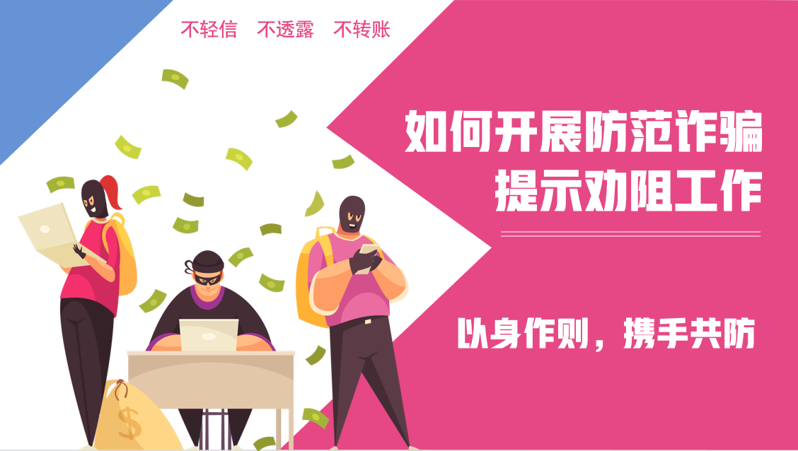 会上,郭鸿鑫老师首先强调开学在即同学们依然要重视安全问题,做好开学的各项准备工作,注意返校时的交通安全,时刻守牢个人安全底线,叮嘱员工们要预防各种形式诈骗,保护好自己的生命财产安全。并引用真实案例,列举今年以来高发的诈骗类型,讲述虚构色情服务、冒充客服亲友、员工校园贷、网络刷单等常见诈骗手法。随后,郭鸿鑫老师强调,防诈骗工作不是各扫门前雪,作为班委应当主动做好帮助同学的工作,并倡导成立数学专业反诈骗小组,在发现班级同学有异常经济行为时应主动向老师汇报,做到及时遏制,有效预防。