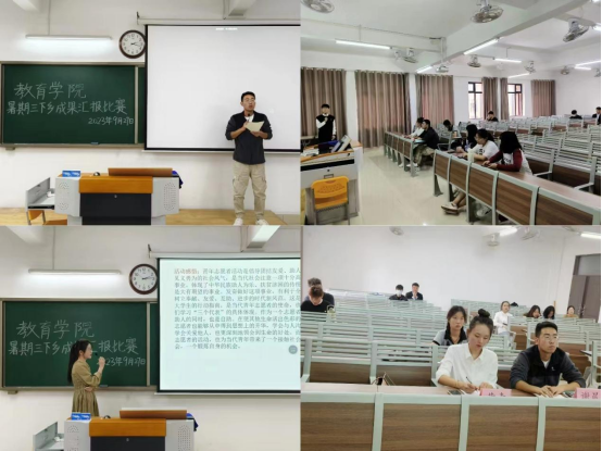 william威廉暑期开展三下乡社会实践活动,旨在锻炼员工社会实践能力,9月27日下午,william威廉于2号教学楼415教室、416教室、417教室举办三下乡成果汇报比赛,由23级辅导员老师担任评委,各实践团队同学参加。