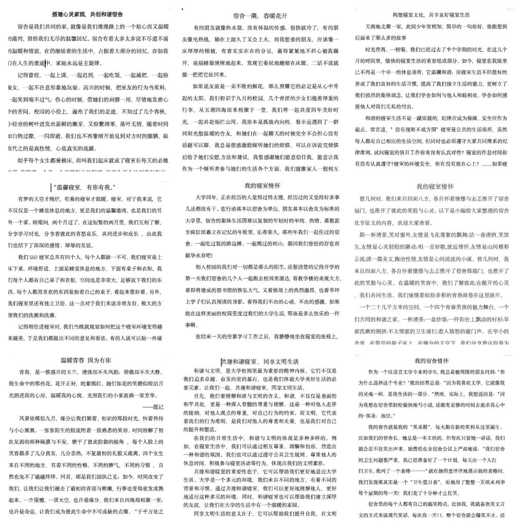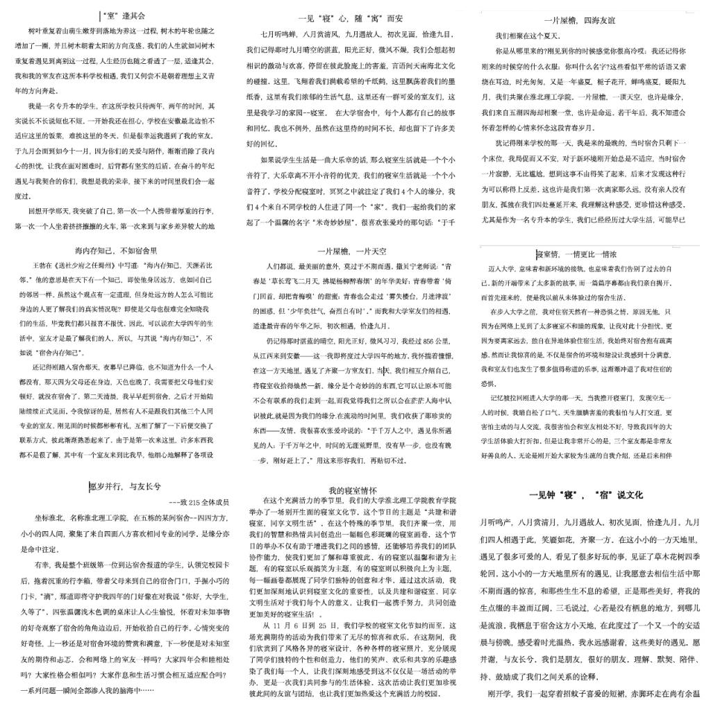 本次“我的寝室情怀”征文比赛共收到214份作品,共有45份作品获奖,其中陈阳光等10位同学获得一等奖,赵文龙等15位同学获得二等奖,于情等20位同学获得三等奖。同学们用自己的文笔来描述出宿舍的点点滴滴,记录了自开学以来宿舍发生的趣事和感人瞬间,表达出室友之间团结友爱的感情,显现了宿舍成员之间的亲情、友情,彰显了丰富多彩的大学宿舍生活。