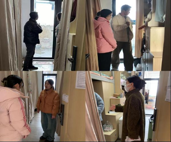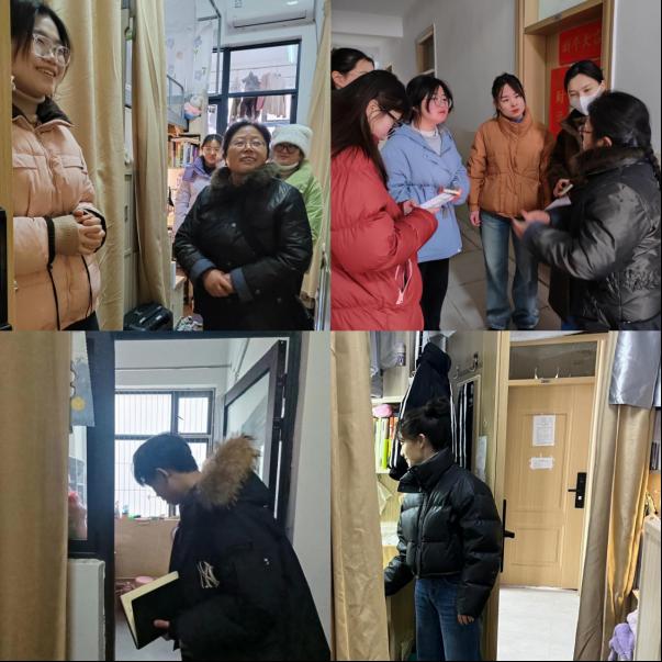 辅导员老师们走进员工宿舍与同学们亲切交谈,了解同学们假期的生活感受、倾听同学们新学期的所思所想,多数同学表示新学期要以新的姿态投入到学习生活中,要让自己的校园生活紧张而充实起来,部分同学还与老师们一起分享了假期参加社会实践和志愿服务的体会和所获得荣誉。在走访中,辅导员老师们全面地了解同学们的生活、学习、心理情况,告知同学们,要将宿舍门上张贴的“文明寝室创建标准”内化为同学们的自觉行动,提醒员工要注意安全,不断提升自己的安全意识,尤其是注意宿舍消防安全,禁止使用大功率电器和违禁物品,在宿舍禁止明火,同时室友之间要相互提醒防范电信网络诈骗。并嘱咐同学们要养成良好的生活、卫生习惯,相互之间要友爱互助,重视安全卫生,树立优良寝风,尽快投入学习,适应新学期生活。