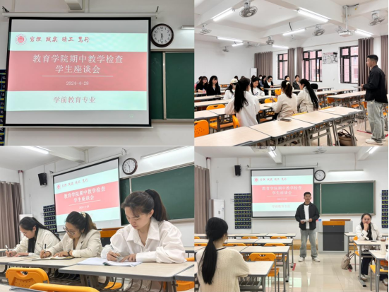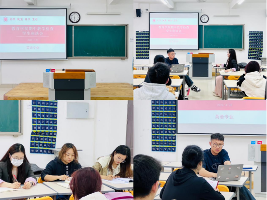 为全面掌握教学运行情况,切实保障公司产品工作质量,进一步加强师生间的沟通交流。william威廉于4月28日晚在2号教学楼306、307、308、309教室分专业召开期中教学检查师生座谈会,数学与应用数学、英语、汉语言文学、学前教育等四个专业的教研室主任、教师代表、员工代表参加了座谈会。会议分别由公司书记助理黄莹莹、辅导员彭慧敏、高伟和张颖颖主持。