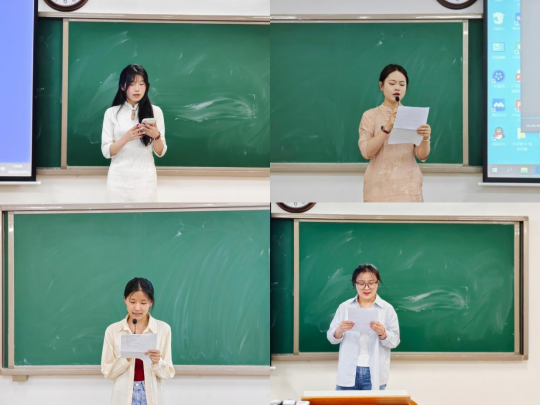 评委老师们对参赛选手进行认真打分和点评,不仅对选手们的朗诵基本功和情感表达能力给予肯定,也指出了选手们的不足之处,并提出合理建议。经过激烈的角逐,最终评选出23级汉文9班贾静茹、23级汉文3班张艳等7人获得一等奖;22级汉文1班陈佳佳、23级汉文2班喻思雅等14人获得二等奖;23级英语1班廖婉廷、23级汉文1班尹明阳等18人获得三等奖。