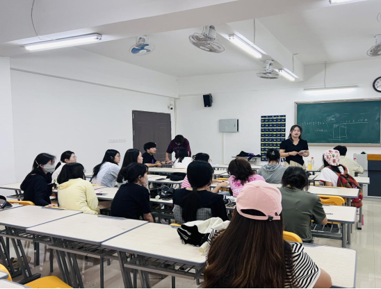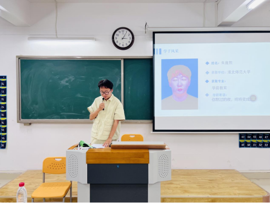 朱雍熙向同学们介绍了备考阶段具体的资料选择和规划方法。他表示,英语和政治的复习要着重真题,英语注重背单词,而政治的关键在于背诵和刷题。朱姝则通过展示自己的学习笔记和练习过的答题卡,向同学们普及了试卷题型和答题格式,同时分享了一些可借鉴的学习博主。
