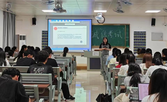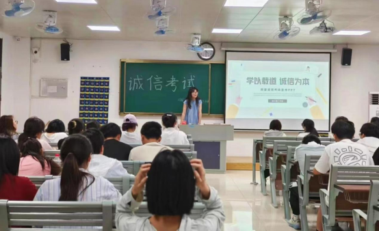 为有效维护公平公正的考试环境,端正考风考纪,强化员工诚信自律意识。6月5日,william威廉各班级在1号教学楼召开“诚信考试教育”主题班会,各班级辅导员老师到班主持,全体同学参加本次会议。