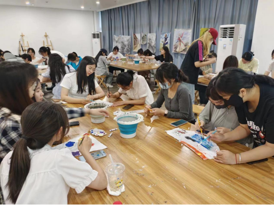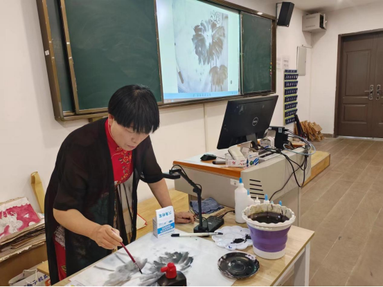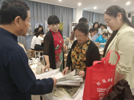 随后,马泰、李凌夫妇进行现场创作,指导员工体验纺织画的创作过程。员工们跃跃欲试,纷纷动手尝试,在布上创作出了各种图案的作品,对纺织画表现出了浓厚的兴趣。