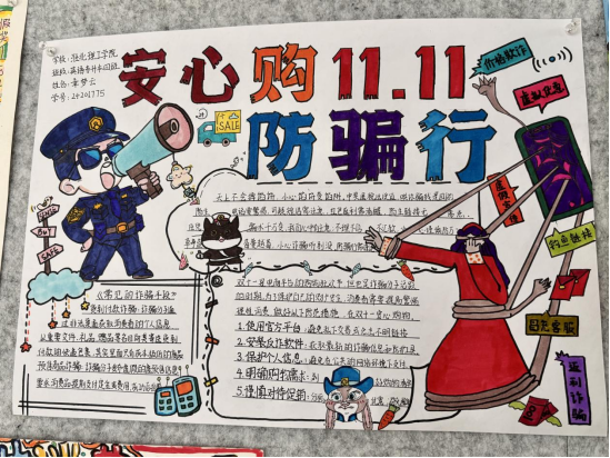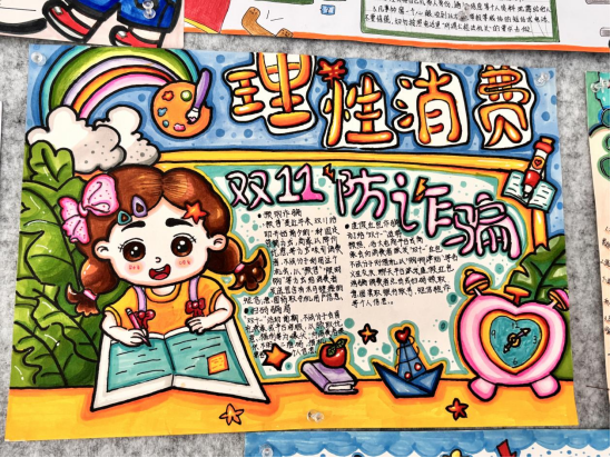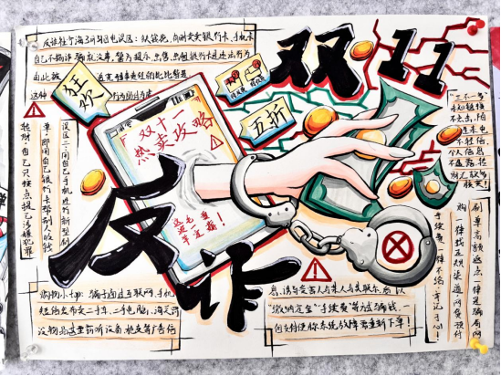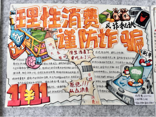 通过此次手抄报比赛活动,正确、理性的消费观念得到有效引导,同学们对网络购物更加理性。同时对网络购物中可能存在虚假促销、价格欺诈等进行了提醒,告知同学们要警惕网络诈骗的各种手段,如假冒客服退款、虚假购物网站、诈骗短信等,同学们增强了自我保护和防骗反诈的意识。