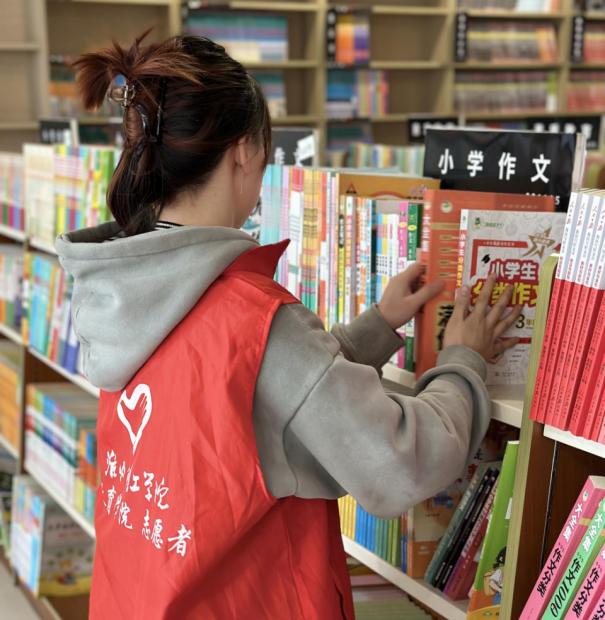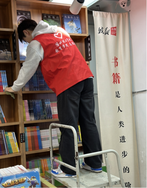 活动开始,志愿服务小队的成员们早早来到新华书店,与书店工作人员进行了简短的沟通后,迅速投入到志愿服务工作中。志愿者们分工明确,有的负责整理书架,将散乱的书籍分类归位,清理书架卫生;有的协助工作人员进行图书上架,确保读者能够快速找到所需书籍;还有的为前来购书的顾客提供导购服务,耐心解答他们的疑问。