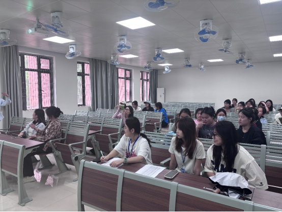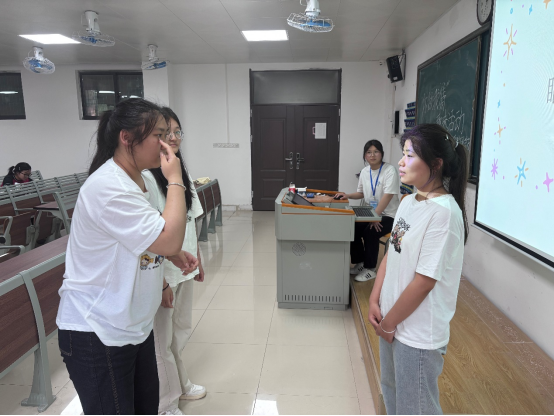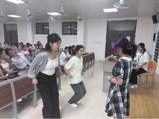 比赛现场气氛热烈,各教室参赛队伍早早到场进行赛前准备。随着主持人宣布比赛开始,选手们迅速进入状态。根据比赛规则,猜词者背对PPT,两名表演者面向PPT,以特定的展位准备迎接挑战。表演者在看到题目后,仅能说出题目类型,通过生动形象的肢体动作、丰富夸张的表情,将题目信息传递给猜词者。过程中,大家全神贯注,严格遵守“禁止语言暗示、场外提示”等规则,凭借默契配合展开激烈角逐。