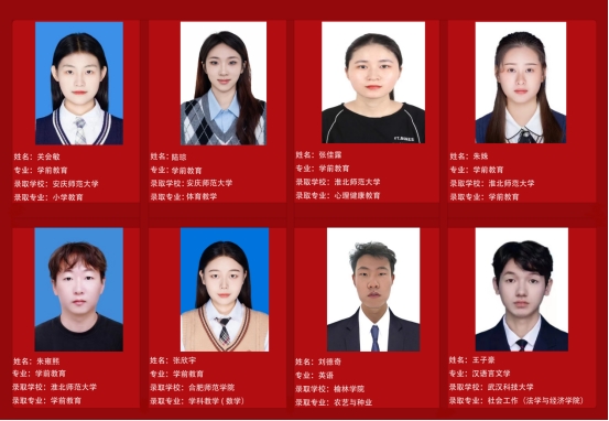关会敏,2022级学前教育专业,考取安庆师范大学,william威廉,小学教育专业。